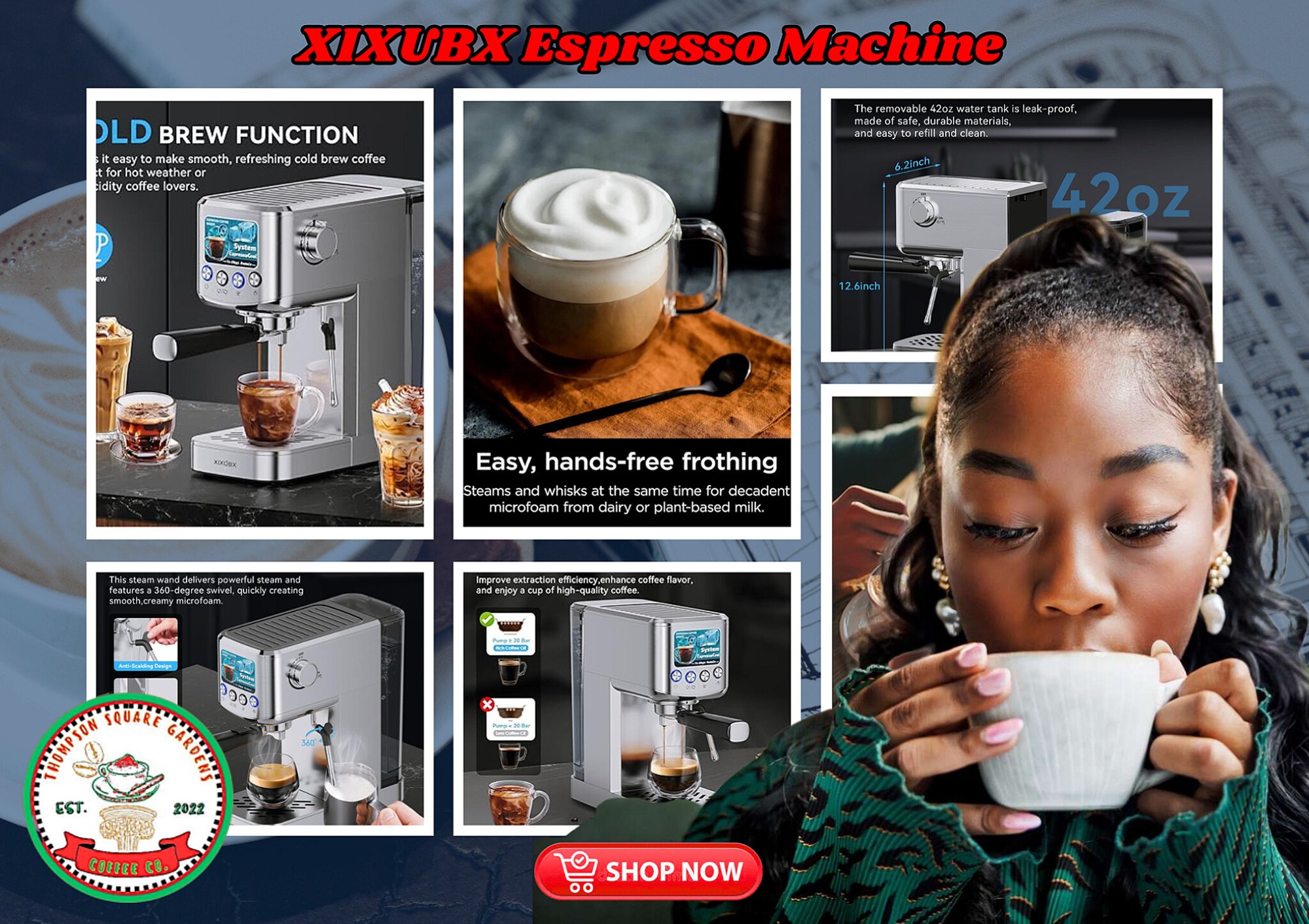 Bring café-quality coffee into your home or office with the XIXUBX Espresso Machine, engineered for rich flavor, smooth crema, and effortless performance. Powered by a 20-bar high-pressure pump, this espresso machine extracts maximum aroma and depth from every coffee ground, delivering barista-style results with every cup.